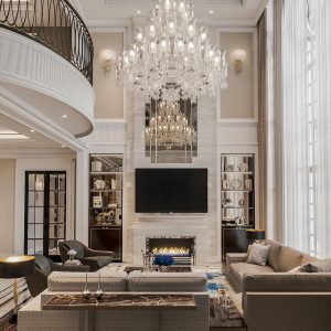 Lấy nền trắng làm chủ đạo, không gian được mở rộng về thị giác, kết hợp cùng sắc xanh tinh tế tạo điểm nhấn dịu mắt, mang lại cảm giác thư thái và cân bằng. Các chi tiết phào chỉ, đường nét kiến trúc được xử lý gọn gàng, tôn lên vẻ đẹp chuẩn mực của phong cách Neoclassical nhưng không hề cứng nhắc.